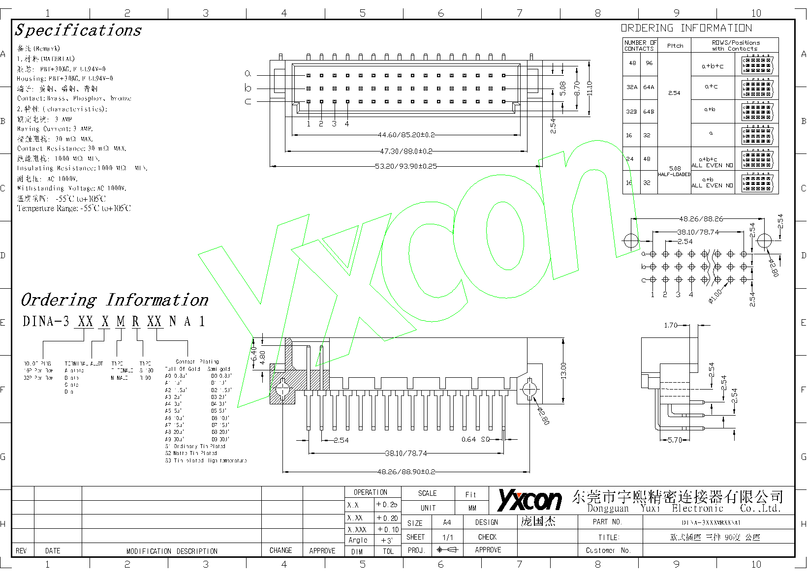2.54欧式插座 三排 90度系列 母头/可按照客户需求开模定制/高性能连接器/