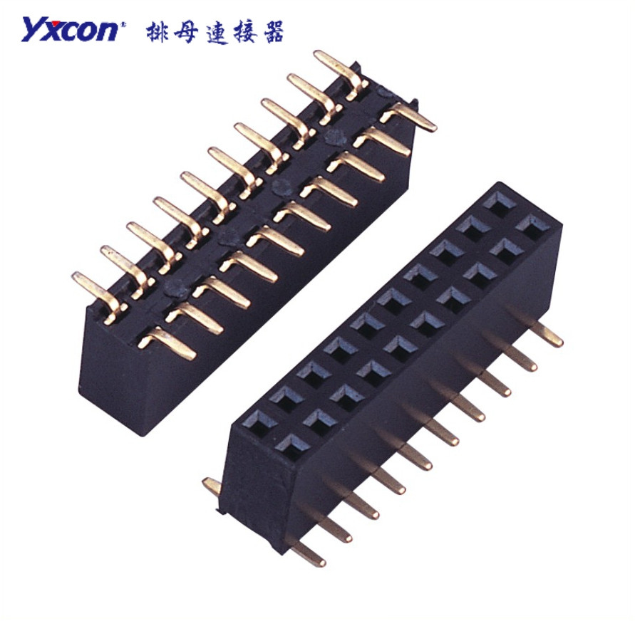 3.分类:根据间距大致可分为0.8mm,1.0mm,1.27mm,2.00mm,2.54mm、3.96mm、5.08mm七类(也可根据需要订制其它特殊间距);根据排数有单排母,双排母,三排母,四排母等;根据封装用法则有贴片SMT,插件DIP(直插/弯插)等;按照安装方式划分:180度、90度、SMT;按照是否需要增高,是否需要带定位柱来划分,定位柱有2种,一种是内定位柱,一种是耳定位柱;排母端子类型: U端子和Y端子(U型端子,接触有3个面一般塑高低的用U型端子;Y型端子,接触有2个面一般塑高高的用Y型端子 )。