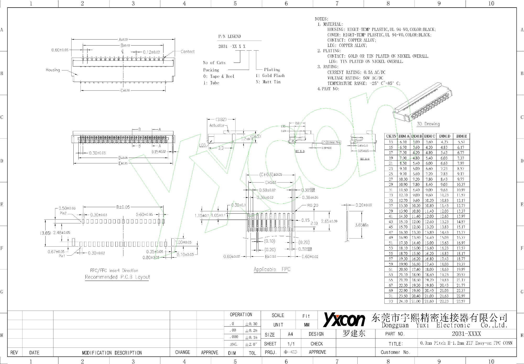 0.3mm spacing FPC,High 1.2mm, back cover type