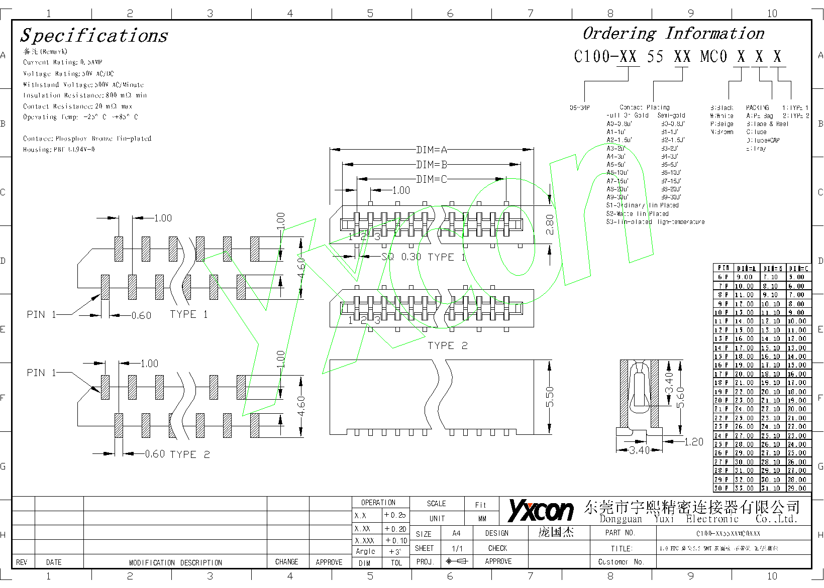 1.0 FPC , SMT, without lock, Positive and negative feet