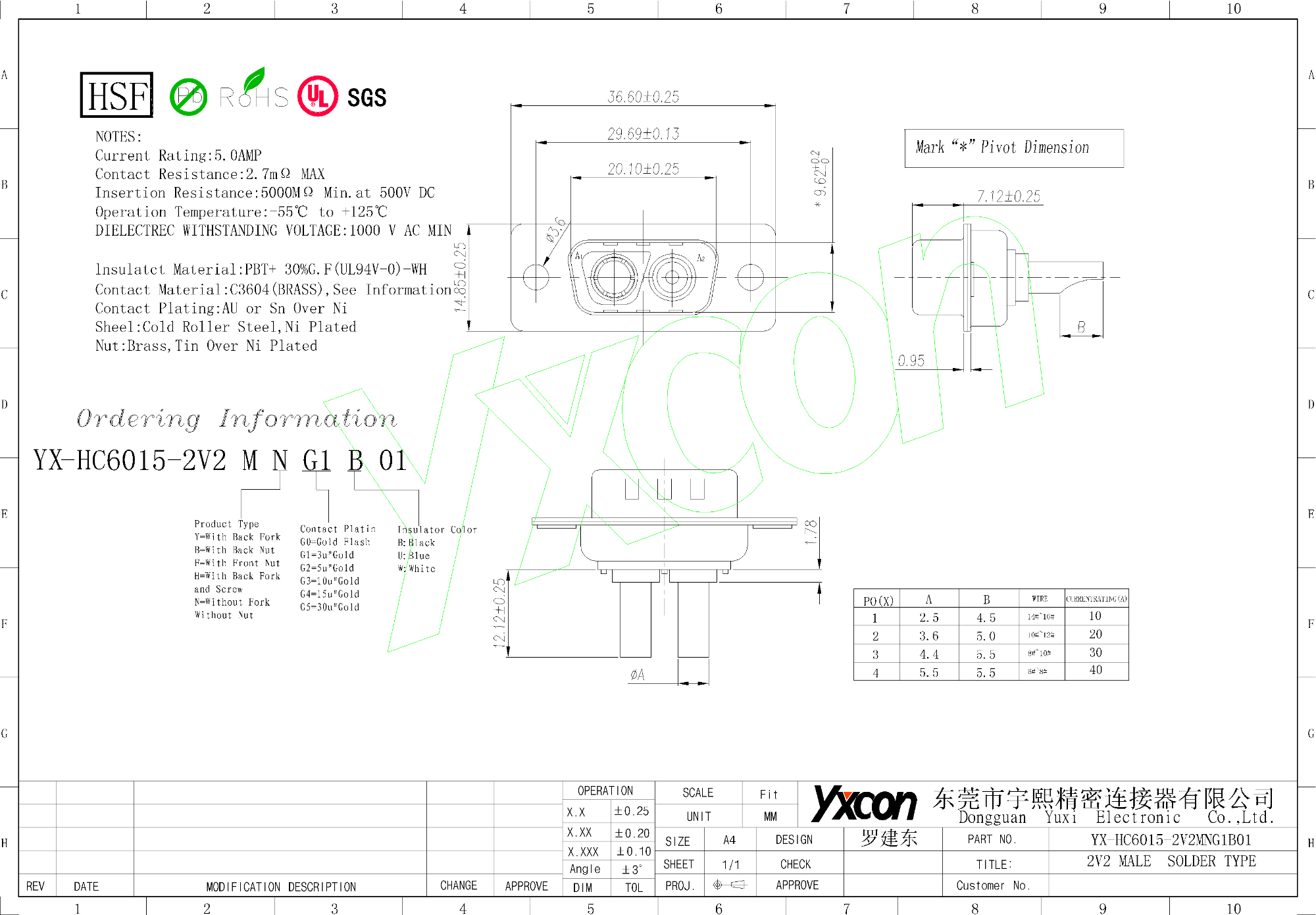 large current connector,2V2,Public seat,all-copper all-gold terminal